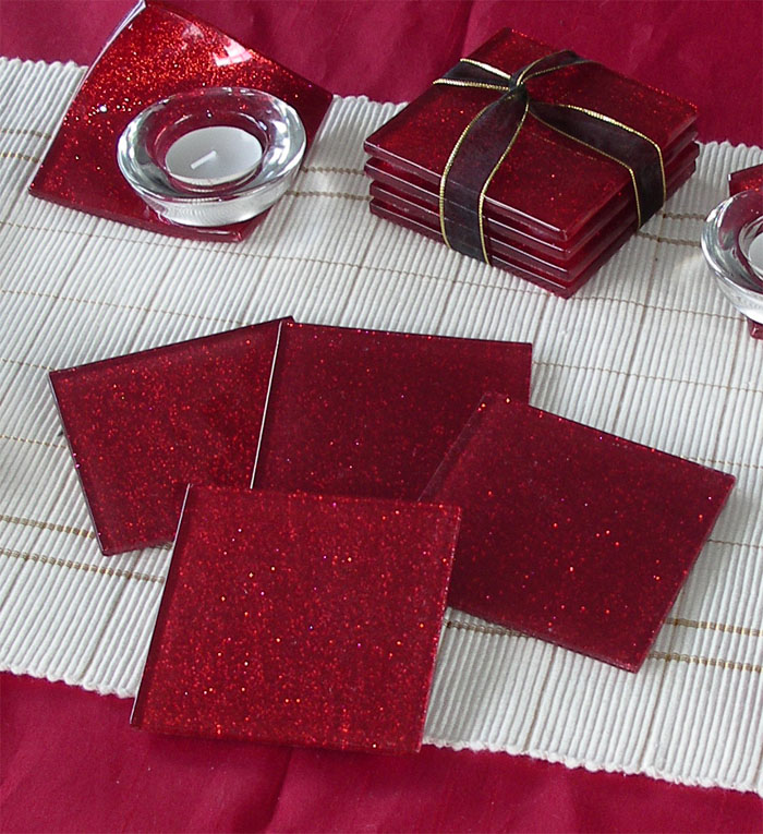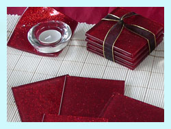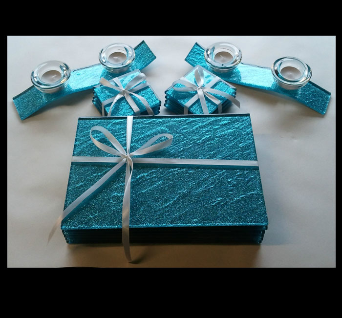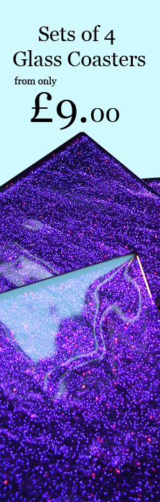 Bring a splash of colour to your dining table, with our unique glass coasters, candle holders, placemats and heat mats! We have a wide range of colour options for you to choose from. To purchase please follow this link to our Ebay Shop.